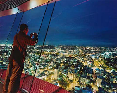 Skytower, view from skydeck (on 220,4 meters). Tallest building in southern hemisphere, height 328 m. Auckland, New Zealand 12/2001