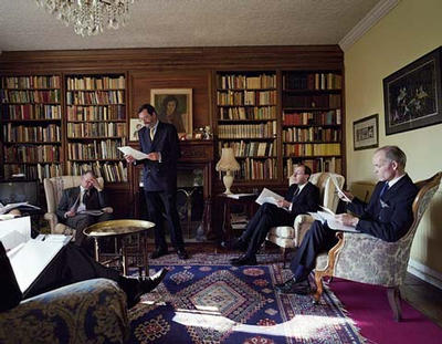 Classroom. In the middle Robert Watson (teacher), left - right: Shaun Bresnihan, Brian Holland-Rose, Declan Travers. Butler School, Kempsford, Great Britain, March 2003
