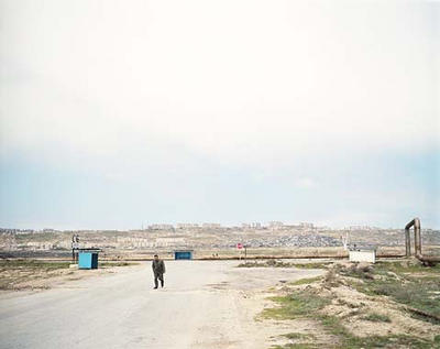 Road to Sandy Island, in the background Zigh and Yeni Gunashli, a suburb of Baku. Pipelines are all over the scene. Baku, Azerbaijan, 04/2003