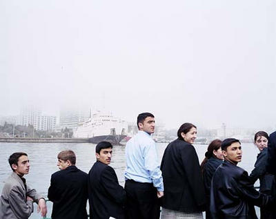 Boat that cruises each half an hour in the bay of Baku. It is a welcome attraction for students and lovers. Baku, Azerbaijan, 04/2003