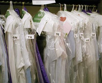 Laundry service, clothes are ready for tenants to be picked up. New York, USA 2003