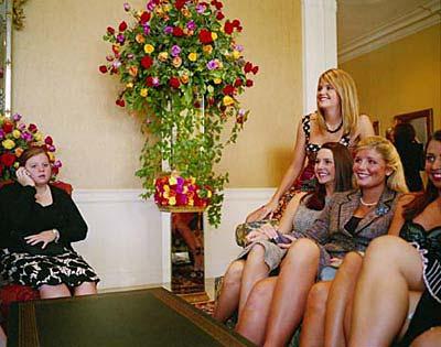 Texas Rose Festival in Tyler Texas. Girls waiting for the Queen's Lucheon - honoring the Queen, past Queens and Royal Representatives at Willow Brook Country Club. (For wives/ladies of the Executive Committee)