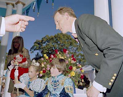 | Texas Rose Festival in Tyler Texas. At the Queen's Tea. Alastair Bruce who just got programm signed by Queen Lauren's royal attendants. He was the speaker at the lady's luncheon aerlier this day. Alastair Bruce has been the Royal and Constitutional Commentator for Sky News, the UK’s premier 24hr satellite news channel, for 11 years and commentates all Britain’s great occasions, including the Golden Jubilee of the Queen, and the funerals of both the Queen Mother and Diana, Princess of Wales (who he knew). |