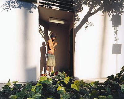 Downtown L.A., homeless working out. Los Angeles, »Toy City«, USA 2000
