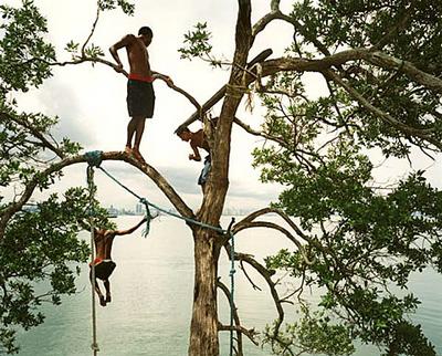 Kids at causeway »calsada amador« at the entrance of the canal. Panama 1998