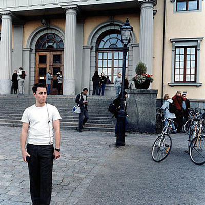 Student in front of the library (Carolina Rediviva). Uppsala, Sweden 09.2000