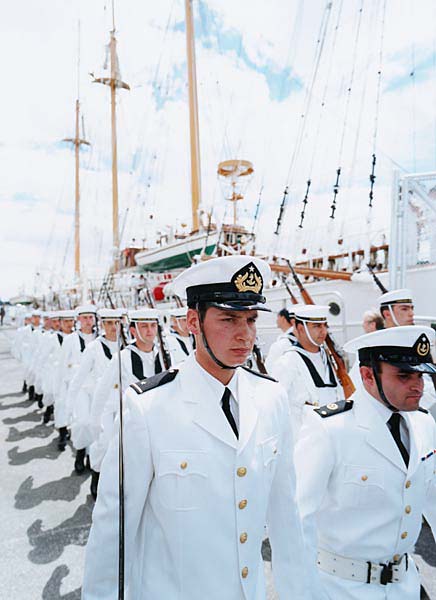 "BE Esmeraldas" sailing ship from Chile visiting Auckland. Auckland, New Zealand, 12.2001