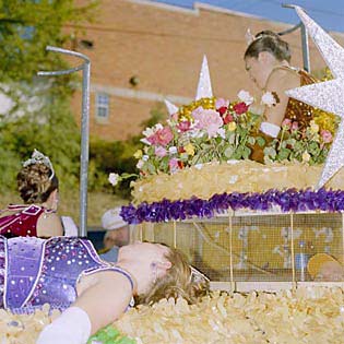 Texas Rose Festival in Tyler Texas. The Tyler Gems on their float. Just before the Saturday parade - exhausted from the party the night before.