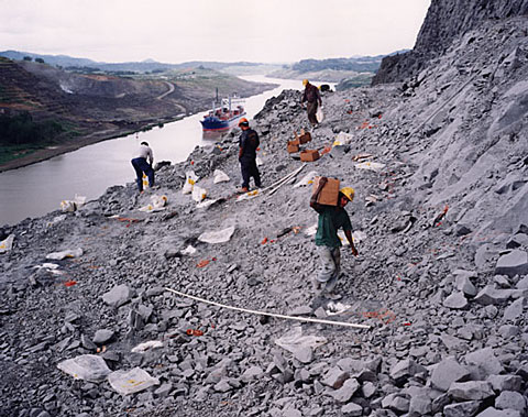 Just before a blust, they widen the canal for two-way traffic. Panama 1998
